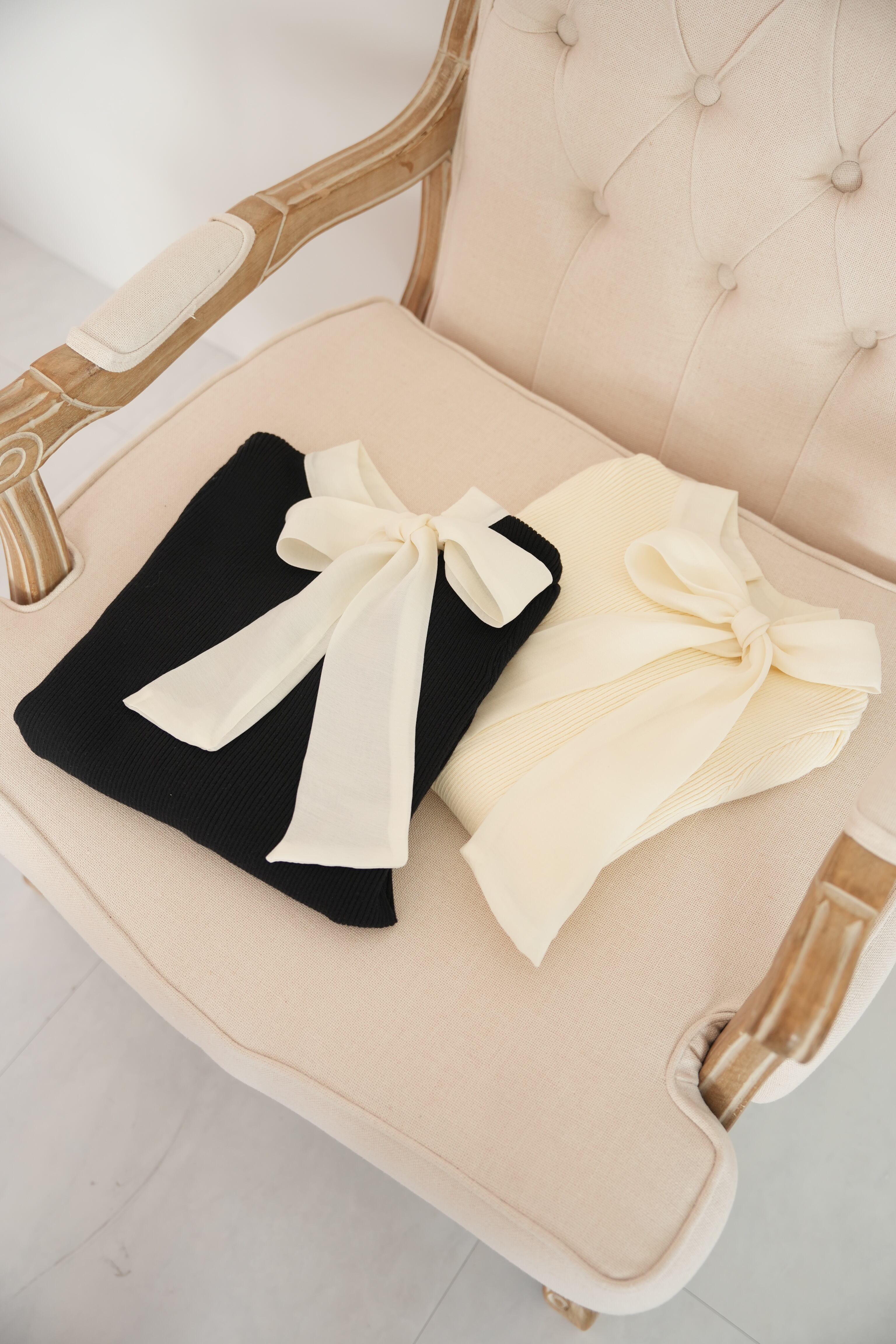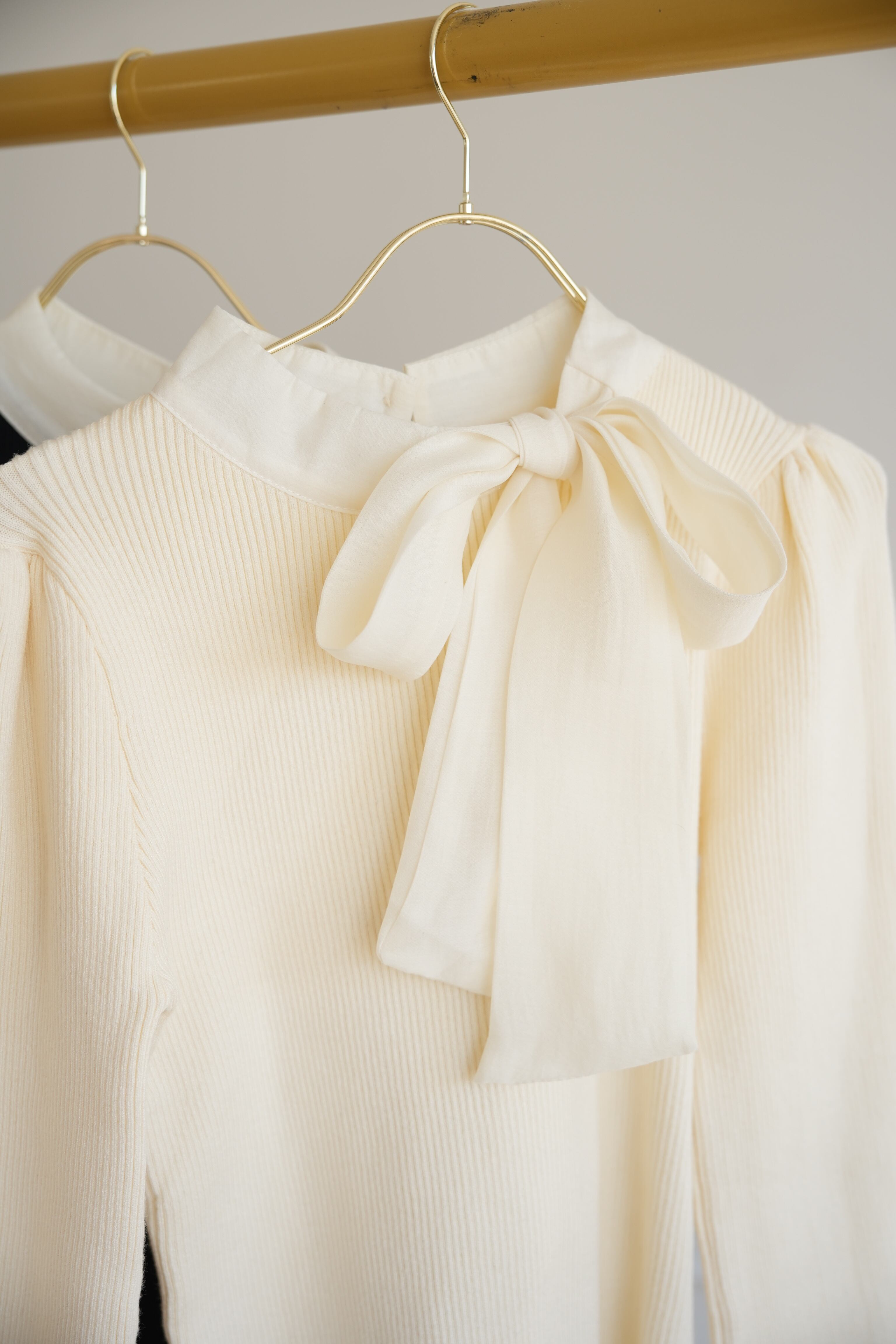 ふんわりパフスリーブに大きなリボンが大人可愛いニットトップス。 ブラウスほど堅苦しくなく、柔らかなニット素材なので普段使いにぴったりです♪ ツイードやビジューなど華やかなボトムスを合わせれば、垢抜けたきれいめコーデに。