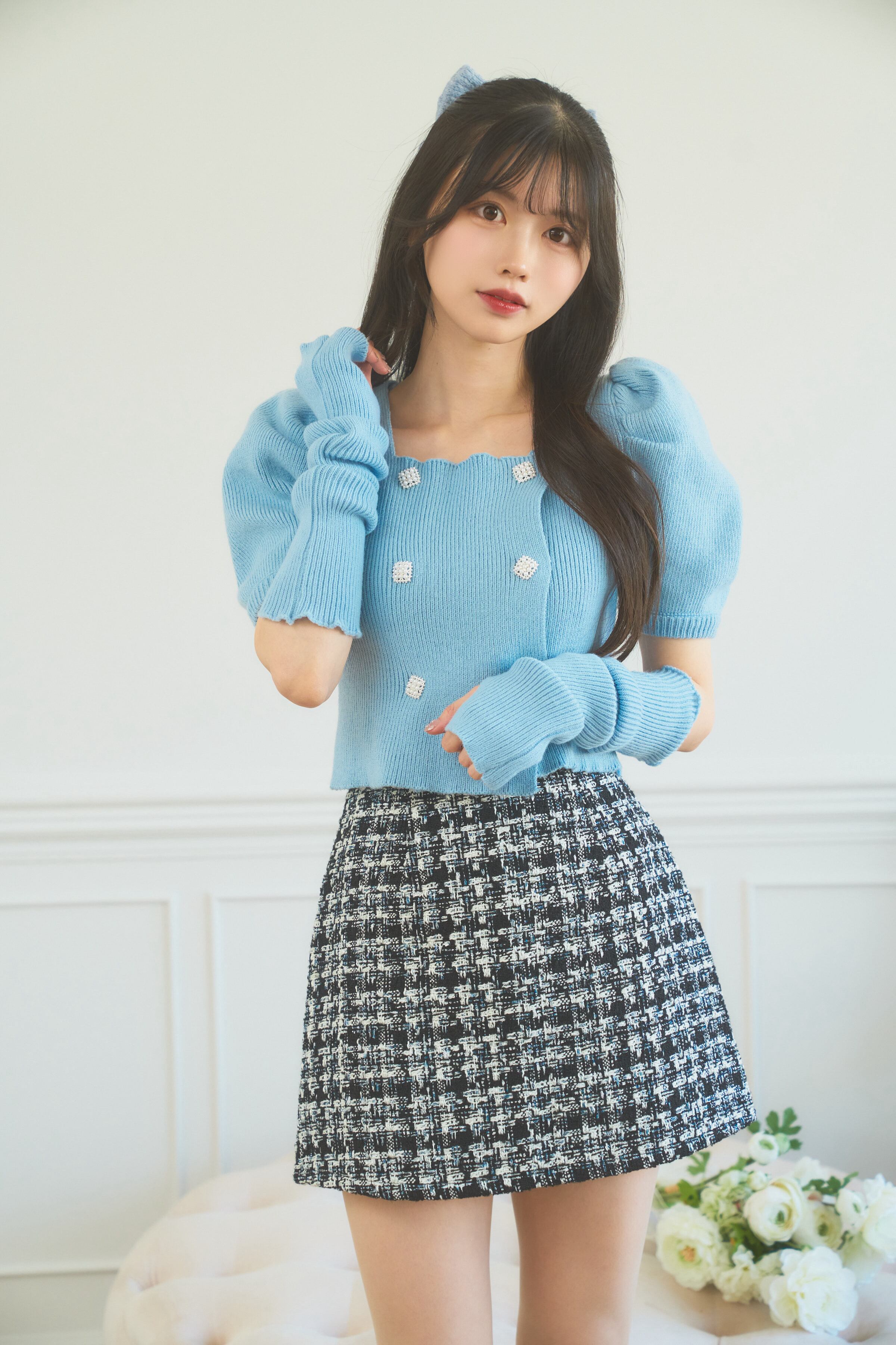 アームウォーマーとトップスがセットのお得なアイテム。 ふんわりパフスリーブに華やかなパールボタンがアクセント。 デコルテをきれいに見せる大胆なスクエアネックで華奢見え効果も抜群! アームウォーマーを外してハーフスリーブとしても着用できます♪