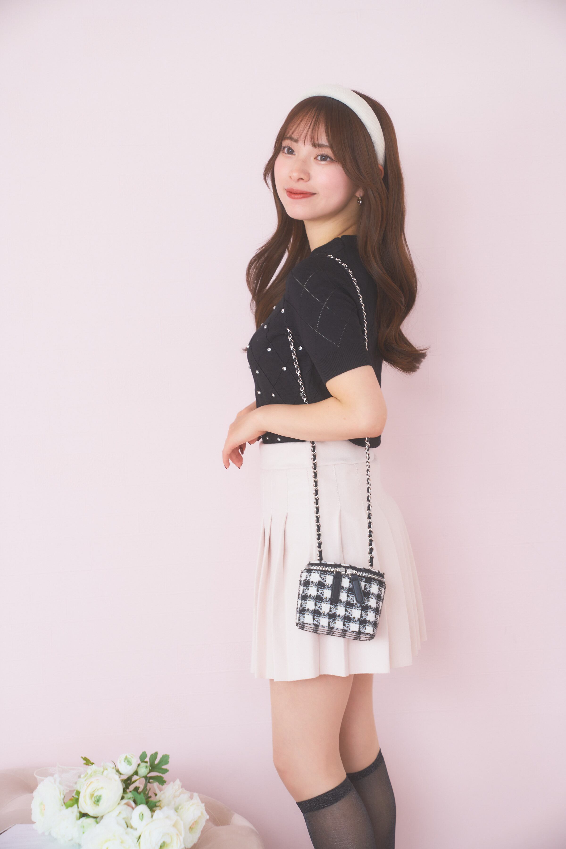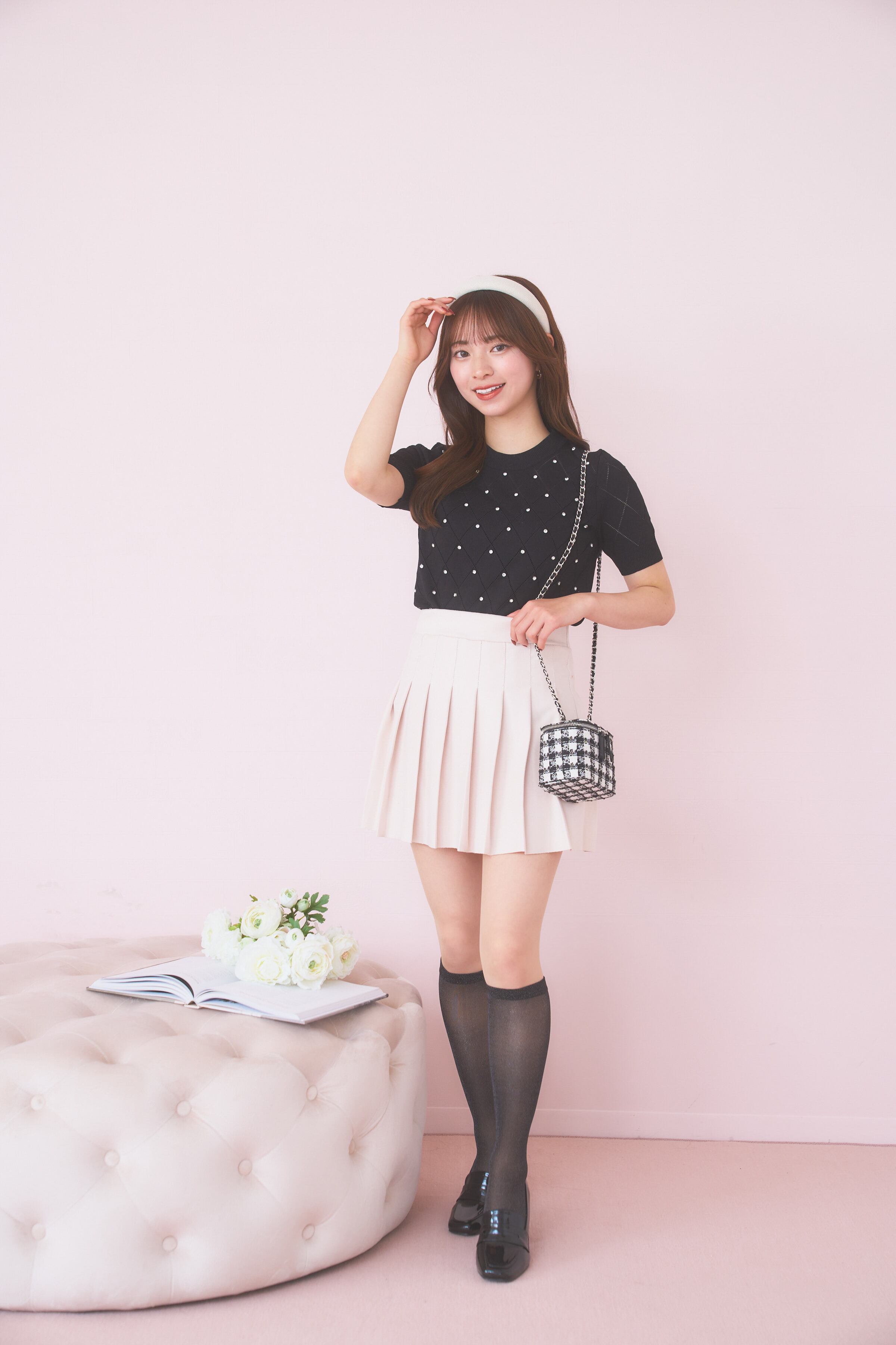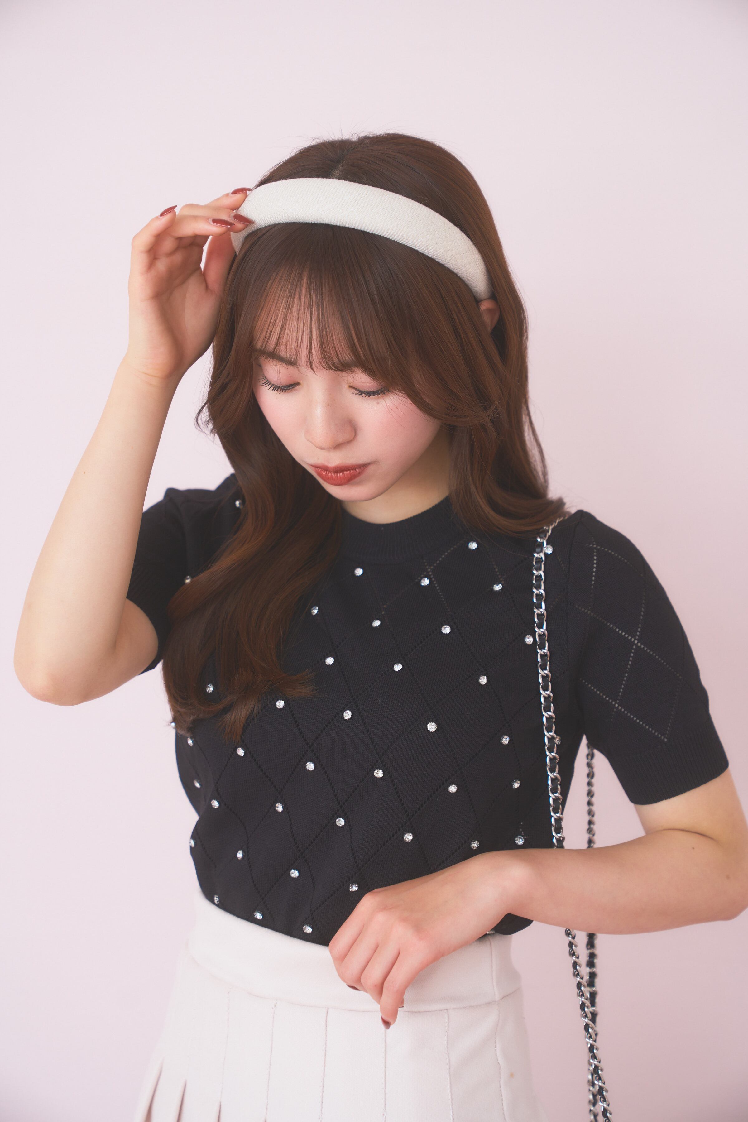 繊細なビジューを贅沢にあしらったニットトップス。 ビジューの輝きがコーデに華やかさを添えるので、無地ボトムスと合わせてもおしゃれ見え。 使いやすいハーフスリーブの袖丈もポイント。 タイトなシルエットなので、ボリュームのあるボトムスと合わせてもすっきりとしたシルエットに◎