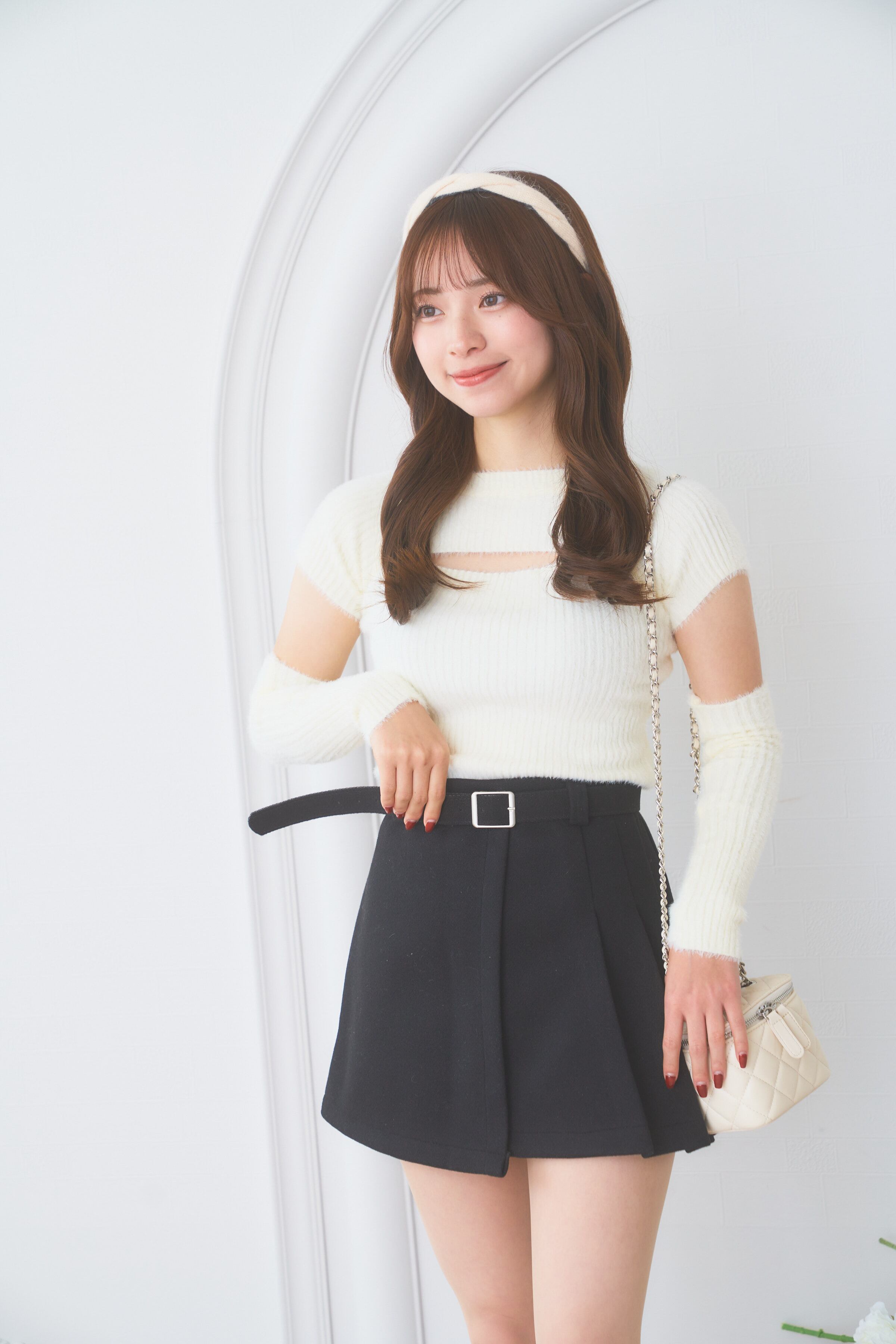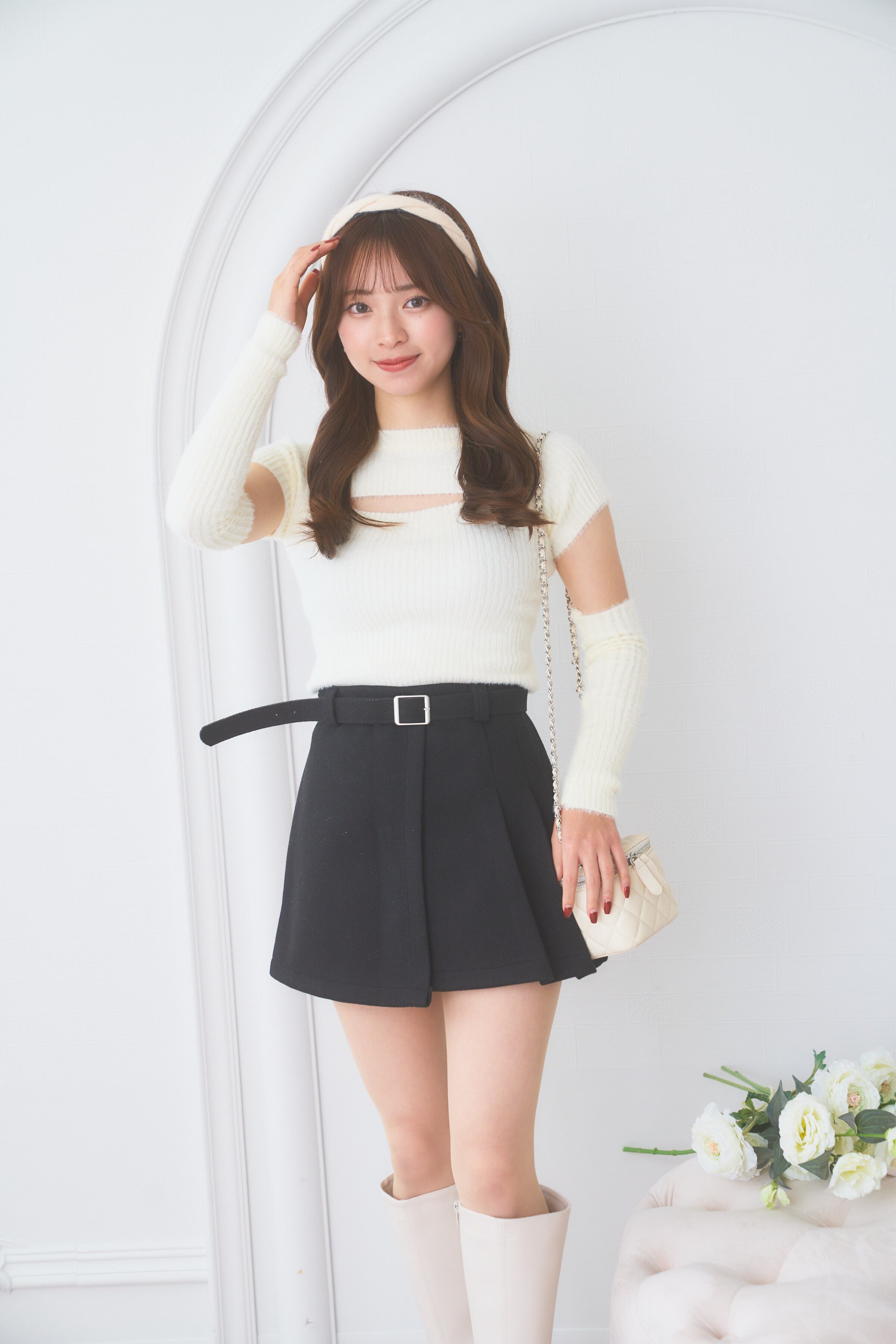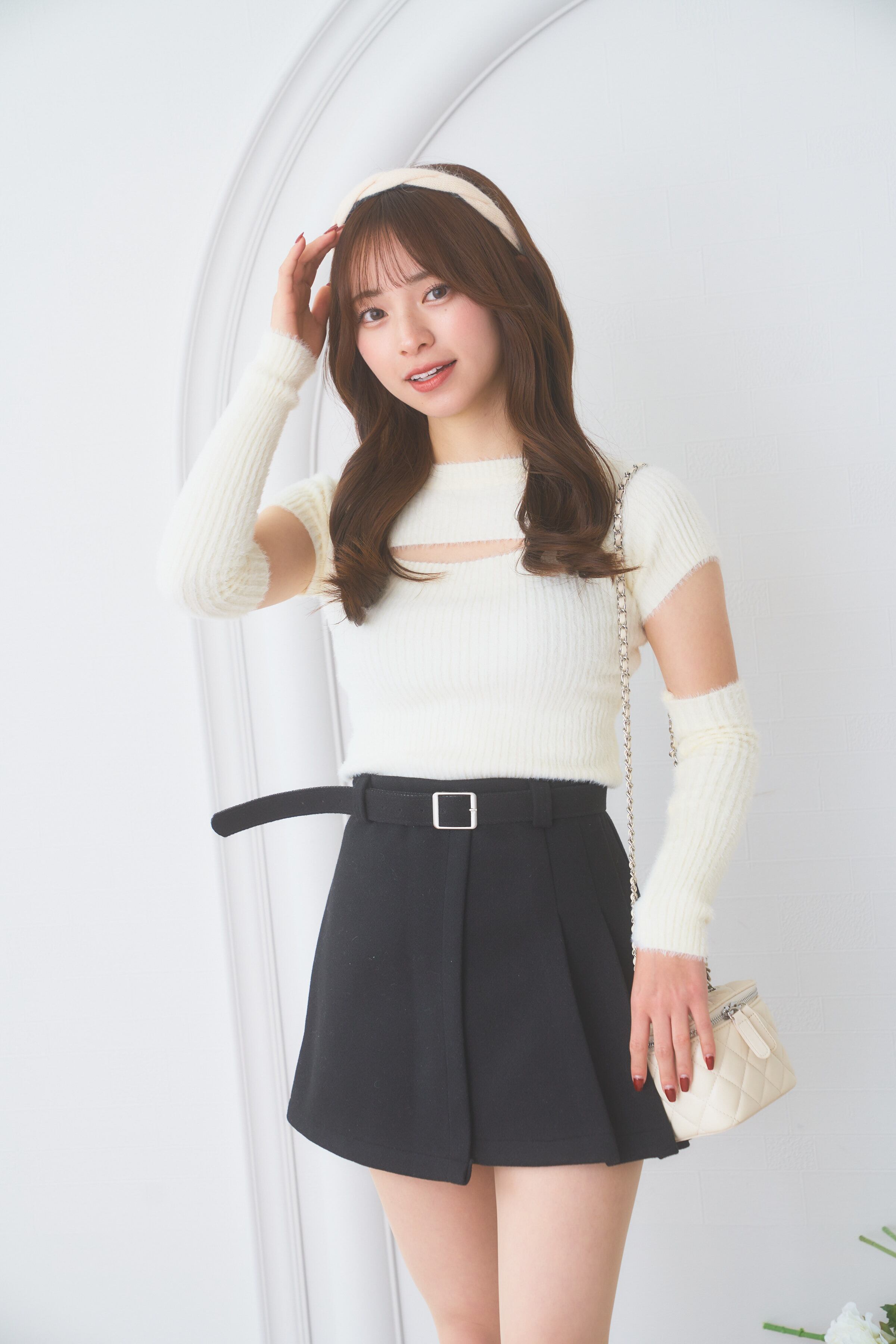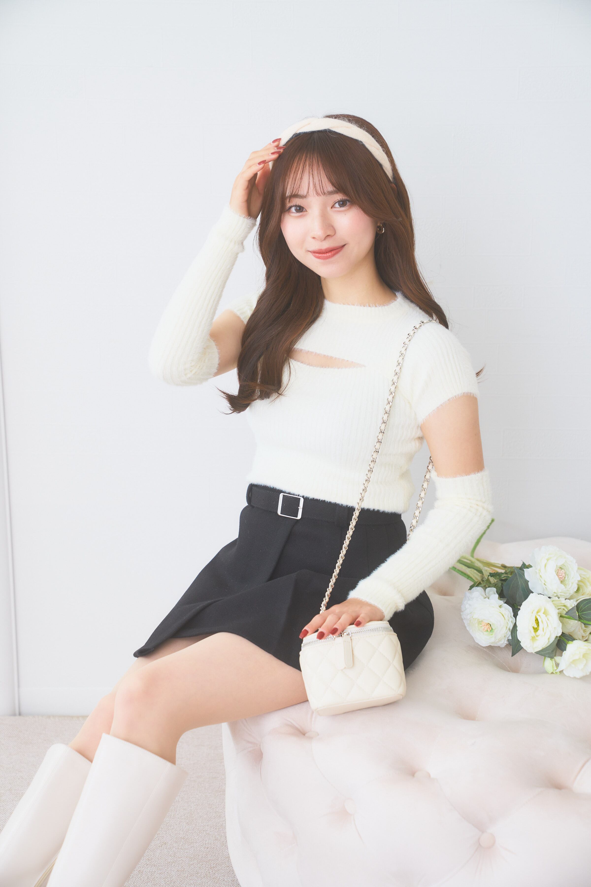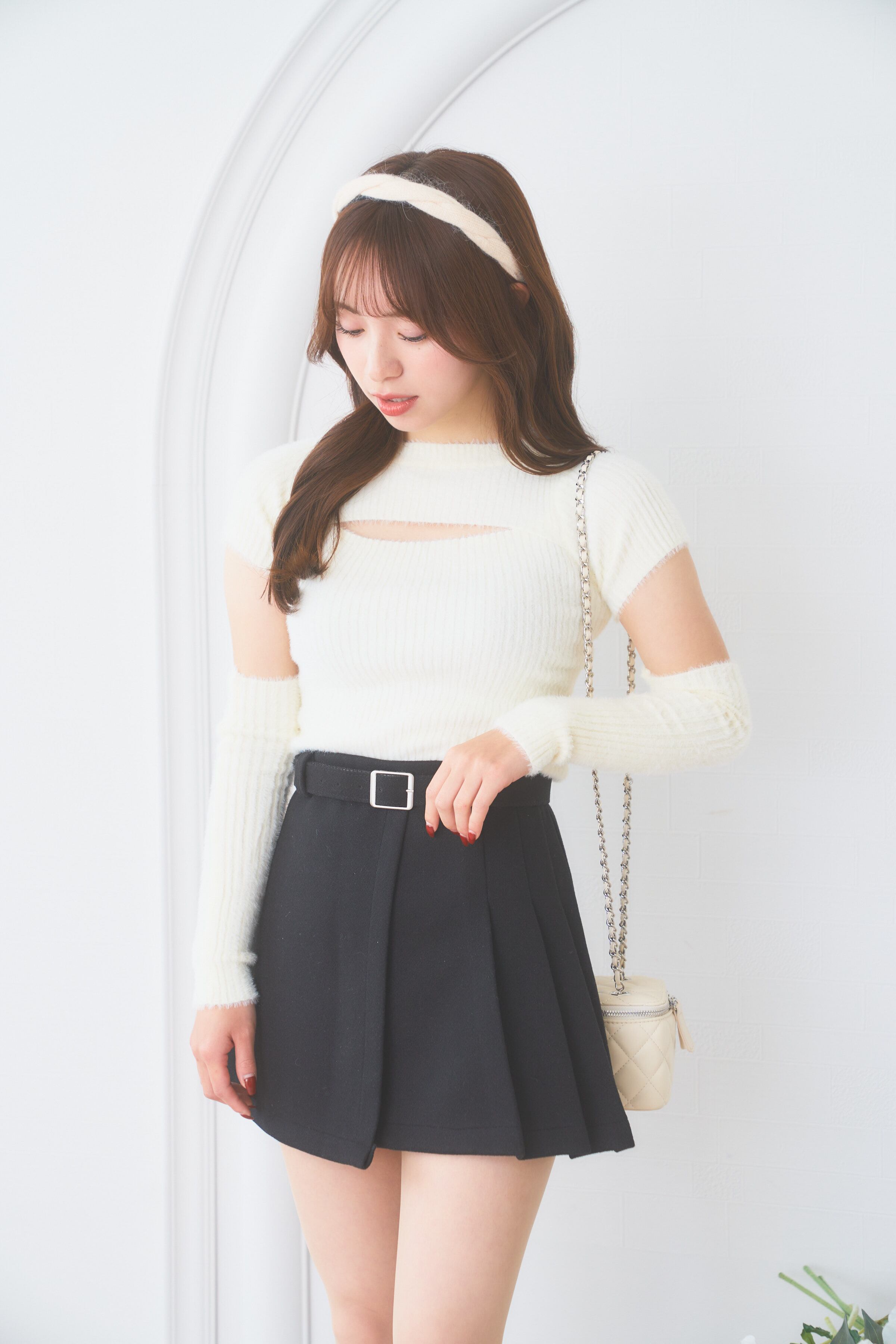 程よい肌見せがヘルシーなニット。 ふわふわのニットが女性らしさを引き立てるデザインに。 アームウォーマー付きも嬉しいポイント♪ 小物やボトムス次第でガーリーからクールまで幅広いコーディネートを楽しめる一着です◎ アームウォーマーを外してハーフスリーブとしても着用できます♪