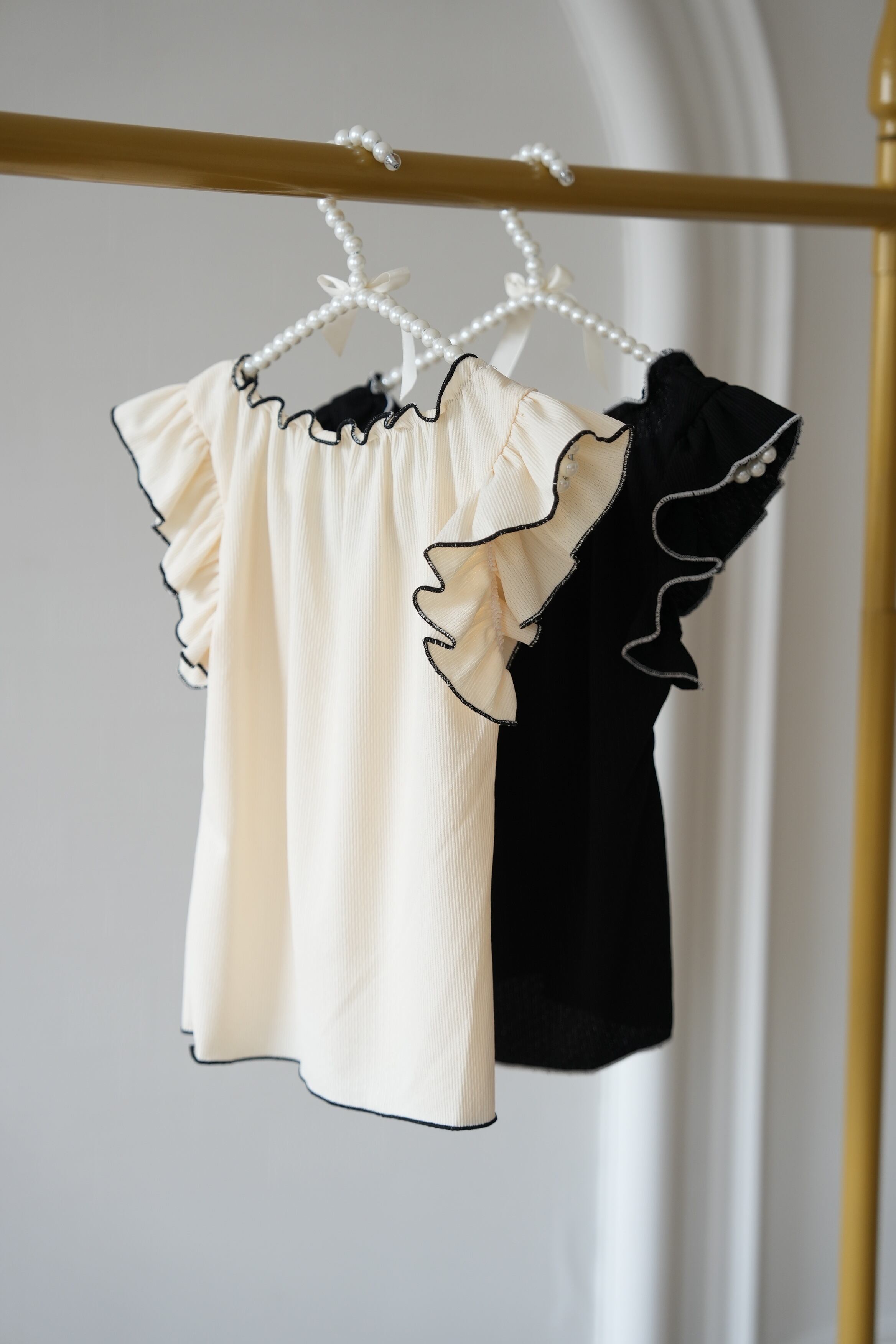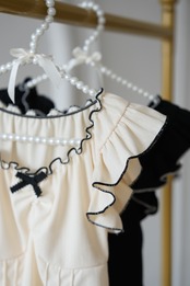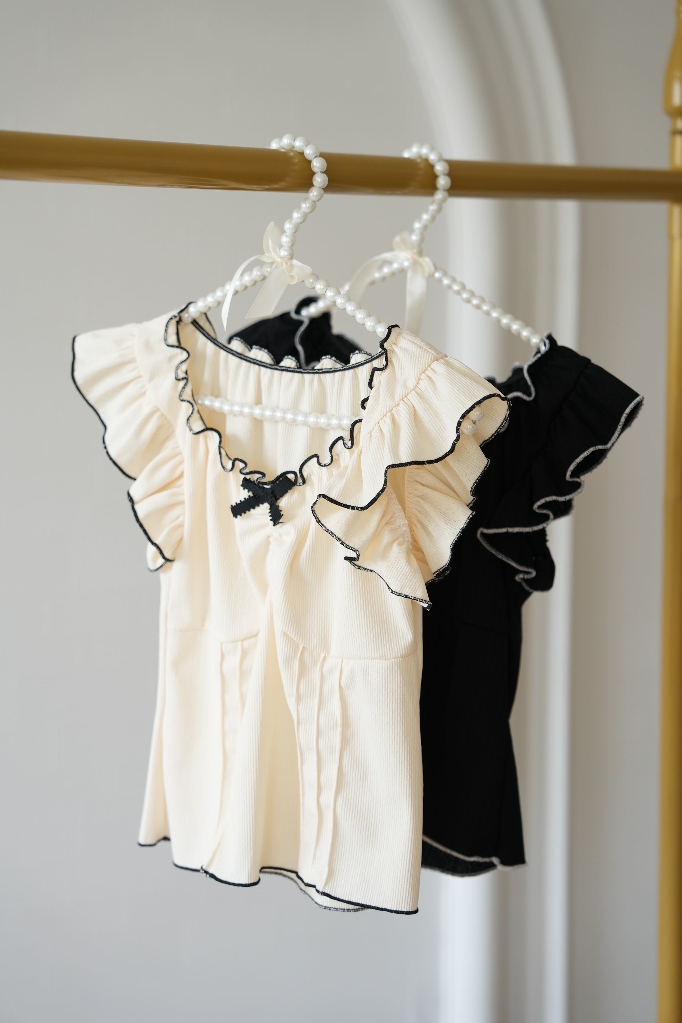 フリルに配色メロウを施すことで立体的なスタイリングに仕上げるitem♪ 品良く着られて、二の腕を華奢見えしてくれるノースリーブデザイン。 胸元のリボンやコルセット調のデザインがフレンチガーリーな雰囲気を演出します♪ ※バニラホワイトのみ多少透け感があります。